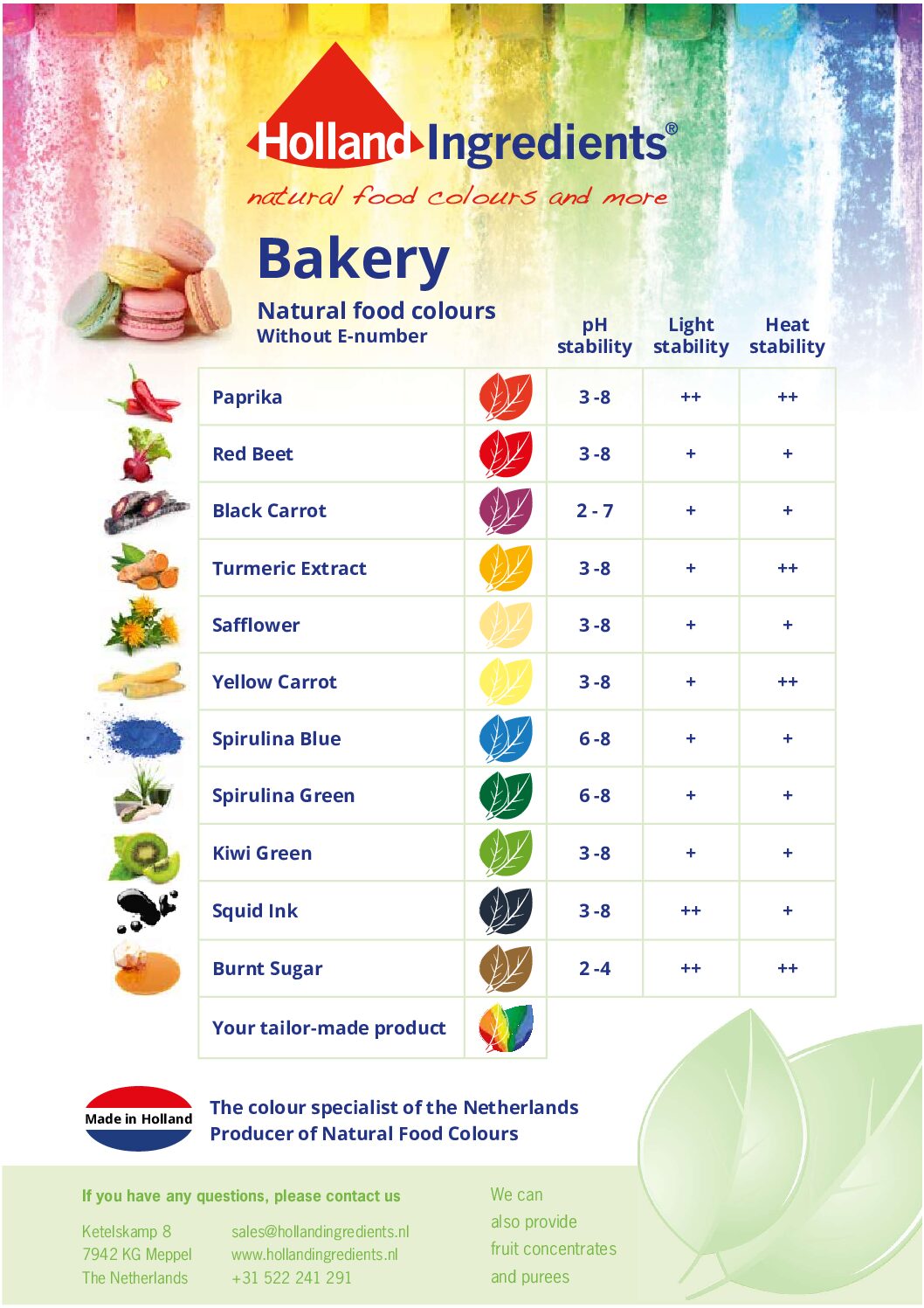 Your baked products are clearly more attractive when they look vibrant and colourful. However, the colours you use need to be heat and light stable, and preferably natural.